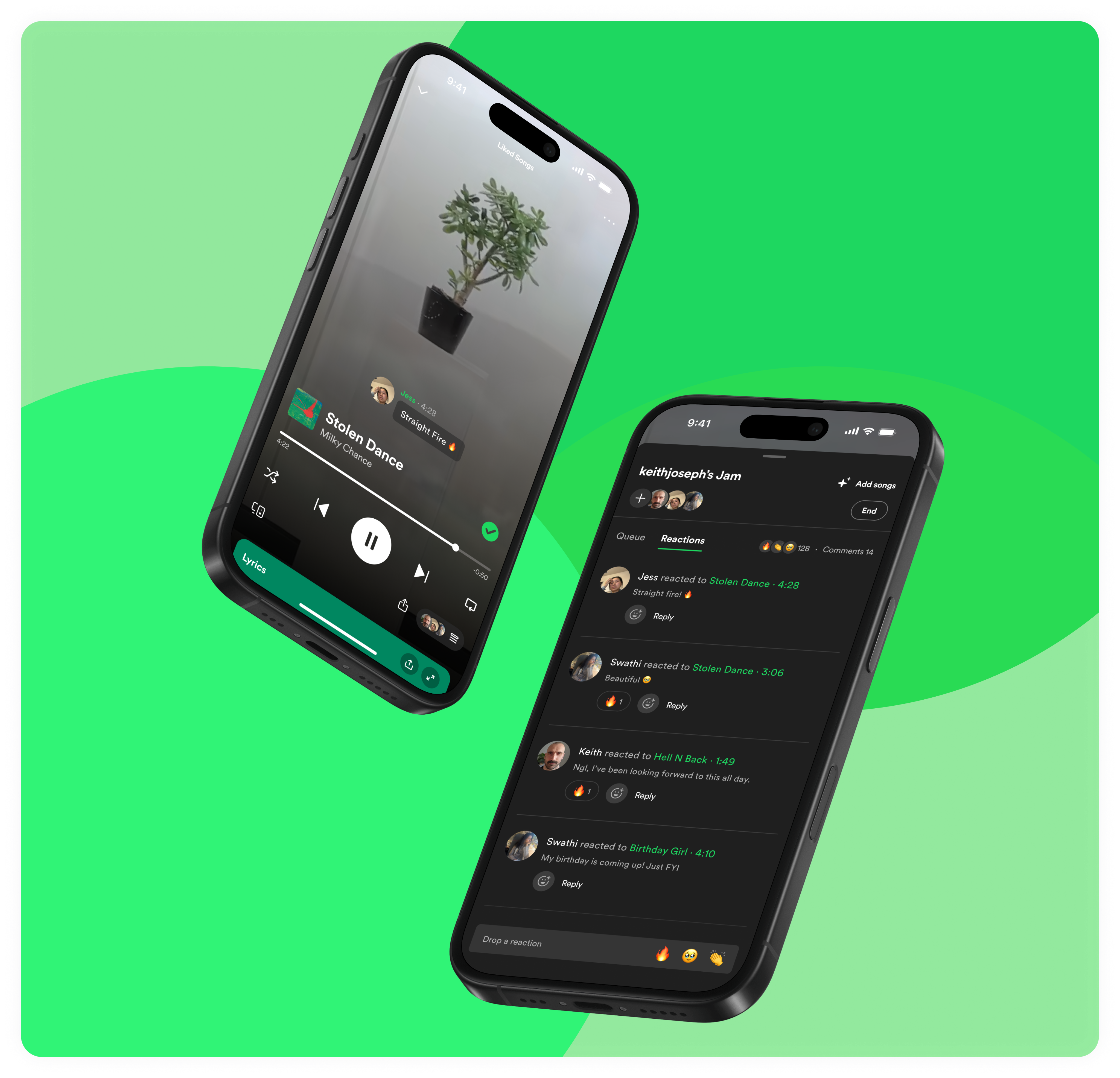 Improving collaborative experiences on Spotify Jam through real-time reactions.